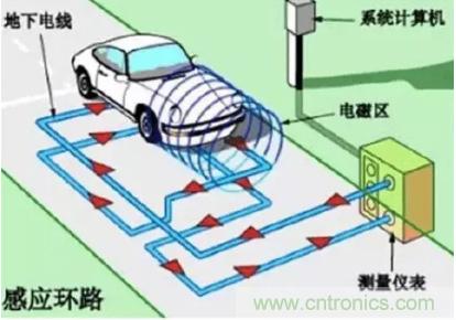 目前,道路檢測交通流狀態(tài)用的最多的傳感器件是環(huán)形線圈,它可以檢測交通量、車速、占有率、車頭時距、車長、長車比和車輛存在等多個項目。環(huán)形線圈檢測原理如圖所示。線圈由專用電纜繞幾匝(一般為4匝)及其饋線構(gòu)成,它通過一個變壓器接到被恒流源支持的調(diào)諧回路,有源環(huán)形線圈構(gòu)成LC調(diào)諧回路的電感部分,并在線圈周圍的空間產(chǎn)生電磁場。當(dāng)含有鐵金屬的車體進(jìn)入線圈磁場范圍,車輛鐵構(gòu)件內(nèi)產(chǎn)生自成閉回路的感應(yīng)電渦流,此渦流又產(chǎn)生與原有磁場方向相反的新磁場,導(dǎo)致線圈的總電感變小,引起調(diào)諧頻率偏離原有數(shù)值,從而發(fā)出車輛通過或存在的信號。