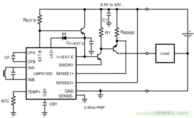 內(nèi)部穩(wěn)壓器允許該器件在6.5V至40V的電源范圍內(nèi)工作??梢詫敵鲞M(jìn)行編程,以NPN或PNP模式驅(qū)動外部晶體管。