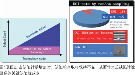 半導(dǎo)體制造中廣泛采用晶圓自動(dòng)檢測(cè)系統(tǒng)已逾30年。在線晶圓檢測(cè)有助于推進(jìn)制造技術(shù)的發(fā)展,它能早期檢測(cè)到工藝中的缺陷,從而減少開發(fā)時(shí)間并防止產(chǎn)出超時(shí)。過去,檢測(cè)缺陷的能力是主要關(guān)注點(diǎn)之一,但現(xiàn)在的要求改變了。近幾年來,每一晶圓的缺陷計(jì)數(shù)迅速增長至每一晶圓多達(dá)100萬個(gè)缺陷,這是因?yàn)榫A尺寸變大,同時(shí)檢測(cè)技術(shù)靈敏度更高了(圖1)。雖然總檢測(cè)計(jì)數(shù)增加及關(guān)鍵缺陷尺寸變得更小,這一時(shí)期缺陷檢查的典型策略并未改變,尤其是在隨機(jī)取樣占主導(dǎo)的缺陷檢查區(qū)域。這種情況能產(chǎn)生常與干擾缺陷在一起的缺陷pareto圖(圖2)。