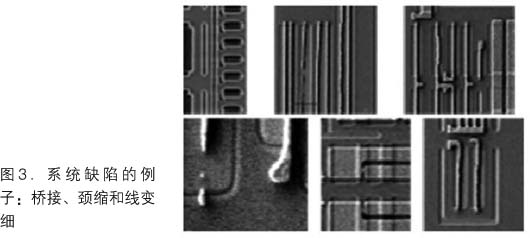 傳統(tǒng)的在線監(jiān)控策略主要關(guān)注像隨機(jī)微粒這樣的隨機(jī)缺陷。盡管檢測(cè)隨機(jī)微粒很重要,但更先進(jìn)的技術(shù)節(jié)點(diǎn)出現(xiàn)了很難檢測(cè)的系統(tǒng)缺陷(圖3)。即使檢測(cè)后,從大量缺陷計(jì)數(shù)中識(shí)別這些缺陷也頗具挑戰(zhàn)性,每晶圓50個(gè)缺陷的取樣率僅是105個(gè)缺陷數(shù)據(jù)的0.05%。隨著系統(tǒng)缺陷的增加,人們更多關(guān)注識(shí)別工藝開發(fā)早期的作圖問題以減少產(chǎn)品推出周期。