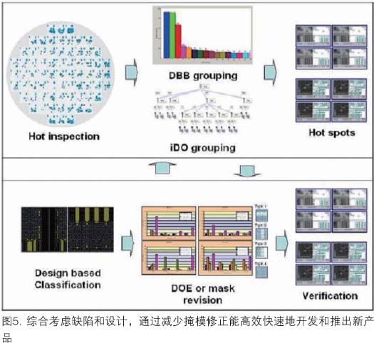 用與設(shè)計(jì)相關(guān)的檢測(cè)設(shè)置,現(xiàn)在可以產(chǎn)生更智能化的檢測(cè)菜單,注意力集中在最重要的芯片區(qū)域。這一技術(shù)已成功地在開發(fā)和生產(chǎn)工廠中進(jìn)行了試驗(yàn)。引入新方法后,缺陷識(shí)別更有效,因而能通過分析實(shí)驗(yàn)結(jié)果減少工藝開發(fā)時(shí)間(圖5)。由于能方便地監(jiān)控關(guān)鍵結(jié)構(gòu),就可以評(píng)估每一組實(shí)驗(yàn),以便選擇刻印圖形結(jié)果最好的工藝條件。