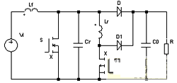在每次主開關(guān)管S導(dǎo)通前,先導(dǎo)通輔助開關(guān)管S1,使輔助諧振網(wǎng)絡(luò)諧振。當(dāng)S兩端電容電壓諧振到零時,導(dǎo)通S。當(dāng)S完成導(dǎo)通后,立即關(guān)斷S1,使輔助諧振 電路停止工作。之后,電路以常規(guī)的PWM方式運行。該拓撲結(jié)構(gòu)在不增加電壓/電流應(yīng)力的情況下,實現(xiàn)了S的零電壓導(dǎo)通和D的零電流關(guān)斷。但由于S1是在大 電流(接近諧振峰值電流)下關(guān)斷、大電壓(接近輸出電壓)下開通, S1處于一種非常不好的硬開關(guān)環(huán)境。